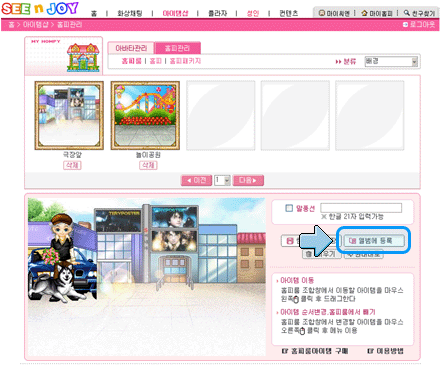 2.'ȨÇǰü¸®'¸¦ Ŭ¸¯ÇÏ¸é ±¸¸ÅÇÑ È¨ÇÇ ¾ÆÀÌÅÛµéÀÌ º¸ÀÌ°Ô µË´Ï´Ù. 'ȨÇÇ·ë ¾ÆÀÌÅÛ'µéÀ» ÀÌ¿ëÇÏ¿© ȨÇÇ·ëÀ» ²Ù¸çÁÝ´Ï´Ù.