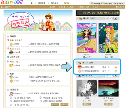¶ÇÇÑ, ÀÏÁÖÀϰ£ Ãßõ¹ÞÀº Á¡¼ö¿¡ µû¶ó Á¡¼ö°¡ ³ôÀº »ç¿ëÀÚÀÇ È¨ÇÇ´Â 'Ȩ' > 'ÇöóÀÚ' ¸ÞÀÎ ÆäÀÌÁö¿¡ 'º£½ºÆ®È¨ÇÇ'¿¡ ÀÏÁÖÀϵ¿¾È º¸¿©ÁÖ°Ô µË´Ï´Ù. |